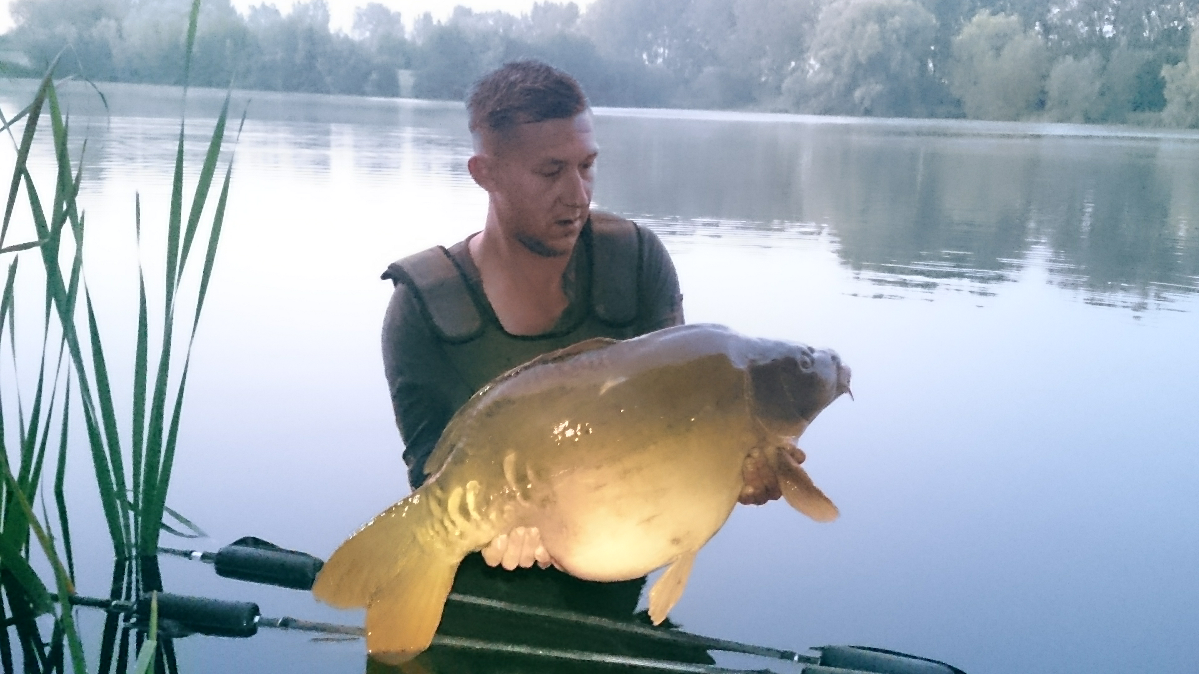 Due to the weed in the lake I think this has a massive advantage as the line lay must look awful when the sun is up and I didn’t want to risk spooking any fish that may not return. Through the day I spombed out another half gallon over the spot to let any remaining fish have a free feed. 5pm came and with the rods back on the money I then spombed another gallon and got sorted for the night and made some supper. Myself and a friend sat there until 8:45pm and decided to get an early night as I was exhausted from the previous nights action. 8:50pm and the rod ripped off and I was in again to what felt like good fish. 15mins later I had a beautiful common which broke the 30lb barrier. “That’ll do” I said to my mate and then the right hand rod slowly starts to go.”I’m in again” I said. It was another 30. I was beginning to think am I going to get any sleep tonight. Through the night I banked another 3 fish which took my total to 7 Inc three 30s and four 20s.