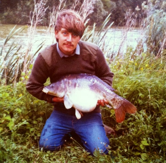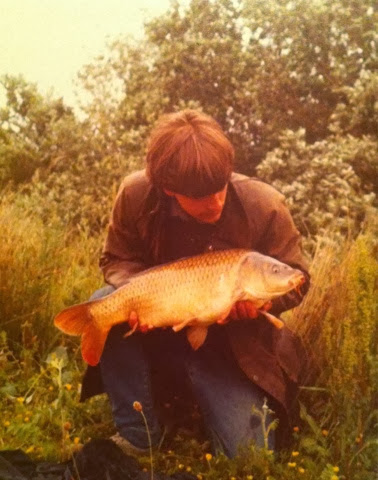 Again fate stepped in as Dave caught the other big fish we had seen , a good 20lb+ fish , a beautiful scaled leeney looking fish , totally different to the Football ! . Although both big mirrors had been out we fished on for other unknown carp , and I was to get lucky again . I caught both the commons we had been watching up the thin arm , I was really chuffed as they were almost a Redmire strain , quiet uncommon in the oxford area at that time !.